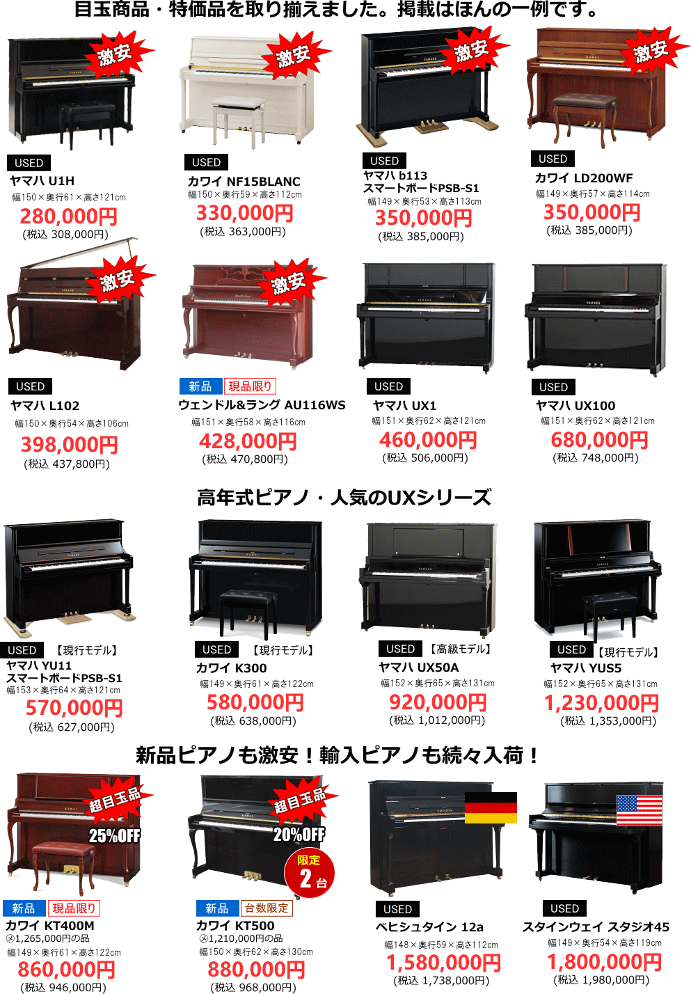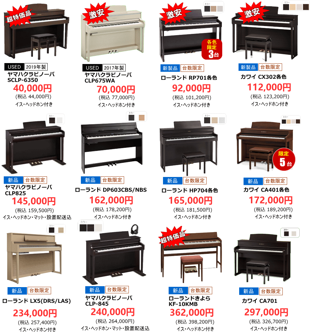 • 新品・中古ピアノ大特価多数展示!