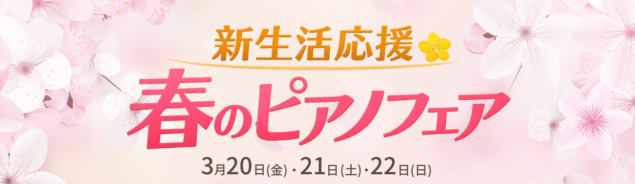 令和8年3月20日(金)~22日(日)の期間限定で、千葉県野田市のピアノプラザにて「新生活応援 春のピアノフェア in 野田ショールーム」を開催致します。充実の品揃えと安さで評判のピアノプラザが総力を結集し、お値打ち価格でご提供。国内外の一流メーカーが勢揃いです!
