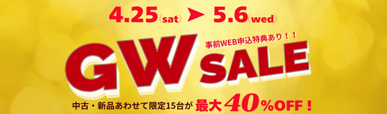 令和8年4月25日(土)~5月6日(水)の期間限定で、千葉県野田市の本社4F防音室ショールームにて「防音室GWセール」を開催致します。豊富な在庫数と展示台数を誇るピアノプラザが総力を結集し、特別価格でご提供致します。ヤマハアビテックス、カワイナサール、その他防音室が勢揃い。